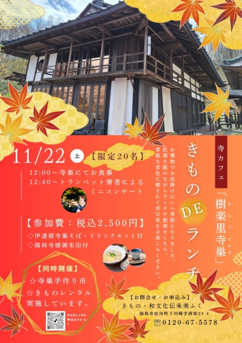 ホーム > News & Information > 寺カフェ樹楽里寺巣できものでランチ グループ店情報